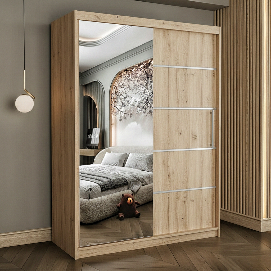 Dulap cu 2 usi glisante Atlantic cu oglinda, 150 cm, Sonoma