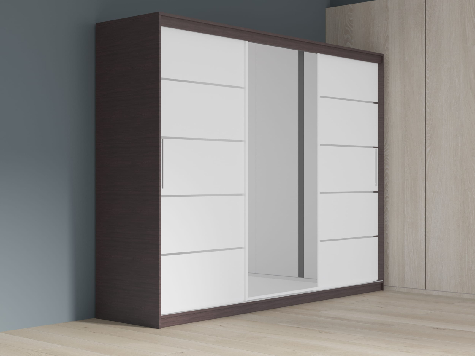 Dulap cu 3 usi glisante Atlantic cu oglinda, 250 cm, Wenge/Alb