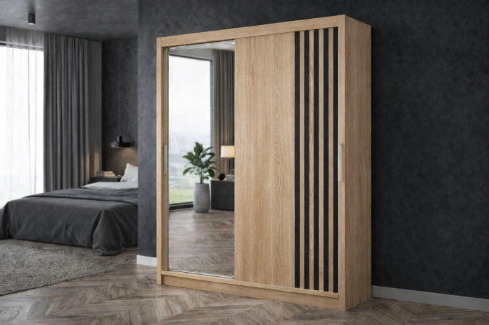 Dulap cu 2 usi glisante cu oglinda Riga, 150 cm, Sonoma