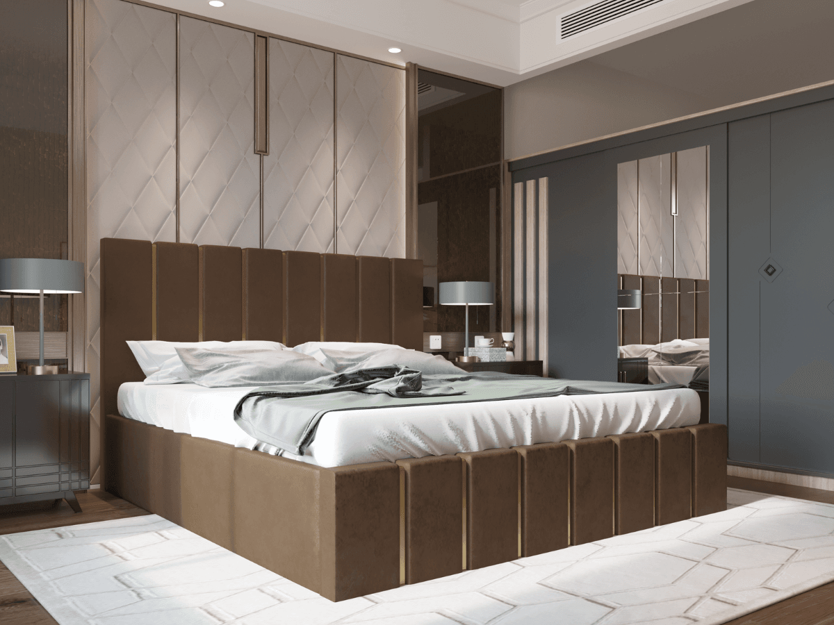 Patul tapitat Hugo este alegerea ideală pentru cei care își doresc un dormitor elegant și confortabil. Cu un design rafinat și detalii aurii pe tăblia înaltă, acest model transformă complet atmosfera camerei, adăugând un plus de stil și personalitate.