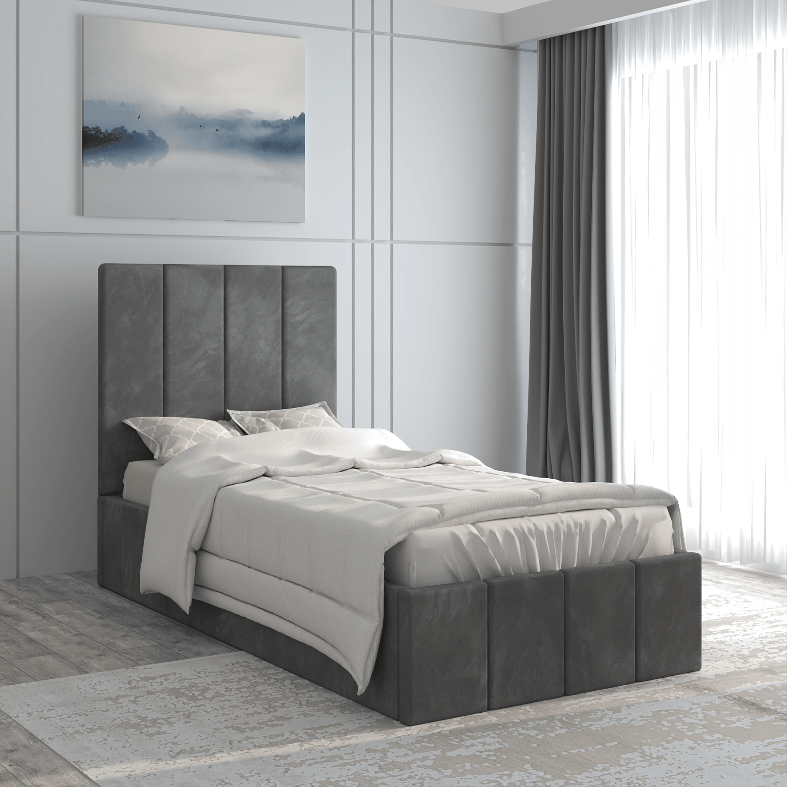 Patul tapitat Prado este alegerea ideală pentru cei care își doresc un dormitor elegant și confortabil. Cu un design rafinat pe tăblia înaltă, acest model transformă complet atmosfera camerei, adăugând un plus de stil și personalitate.